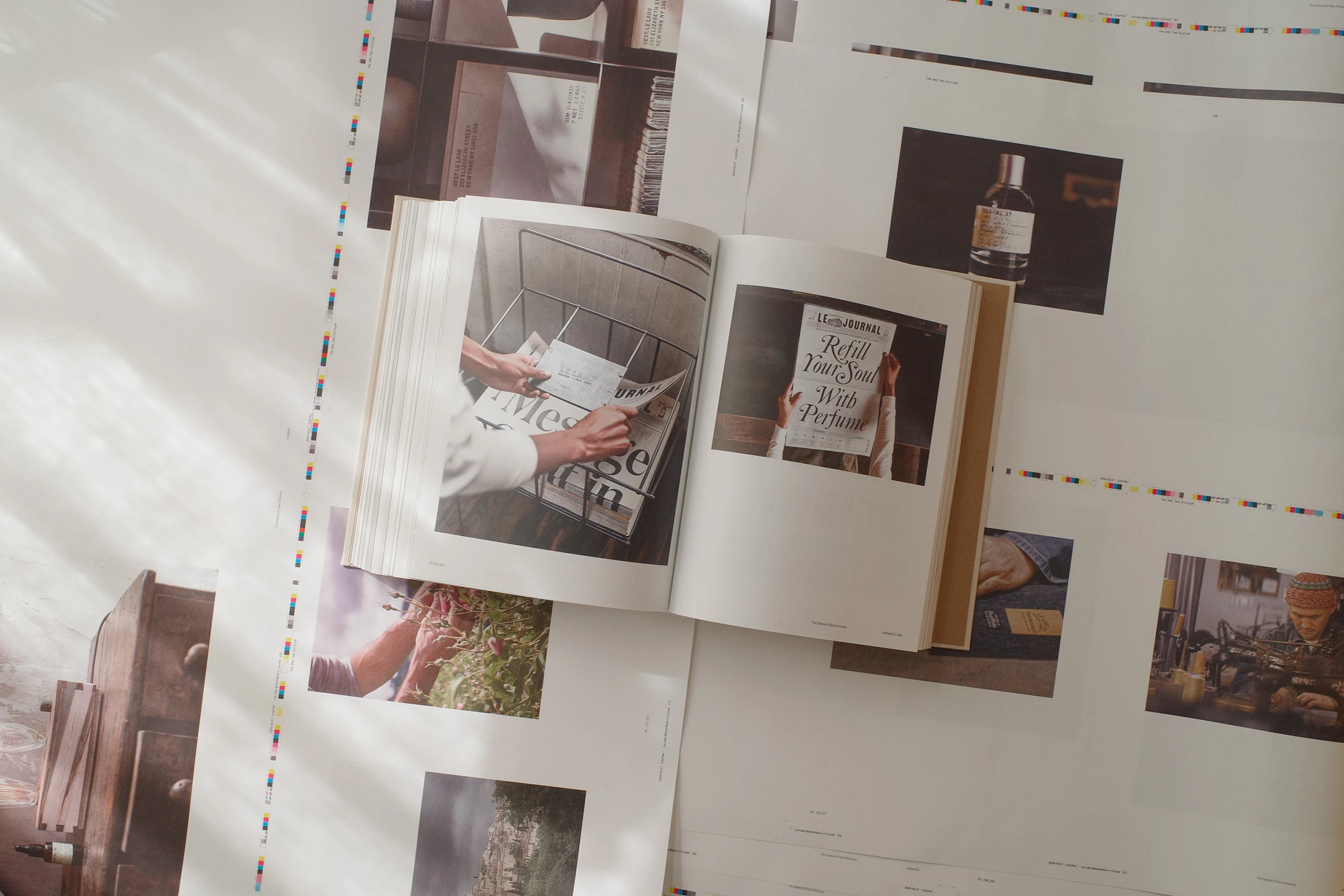 Initial conversations for this project began in April of 2024, while the book was completed in August of 2025. The process for this project was incredibly collaborative and we felt a tremendous level of responsibility to create a publication that accurately reflected the Le Labo brand and legacy.