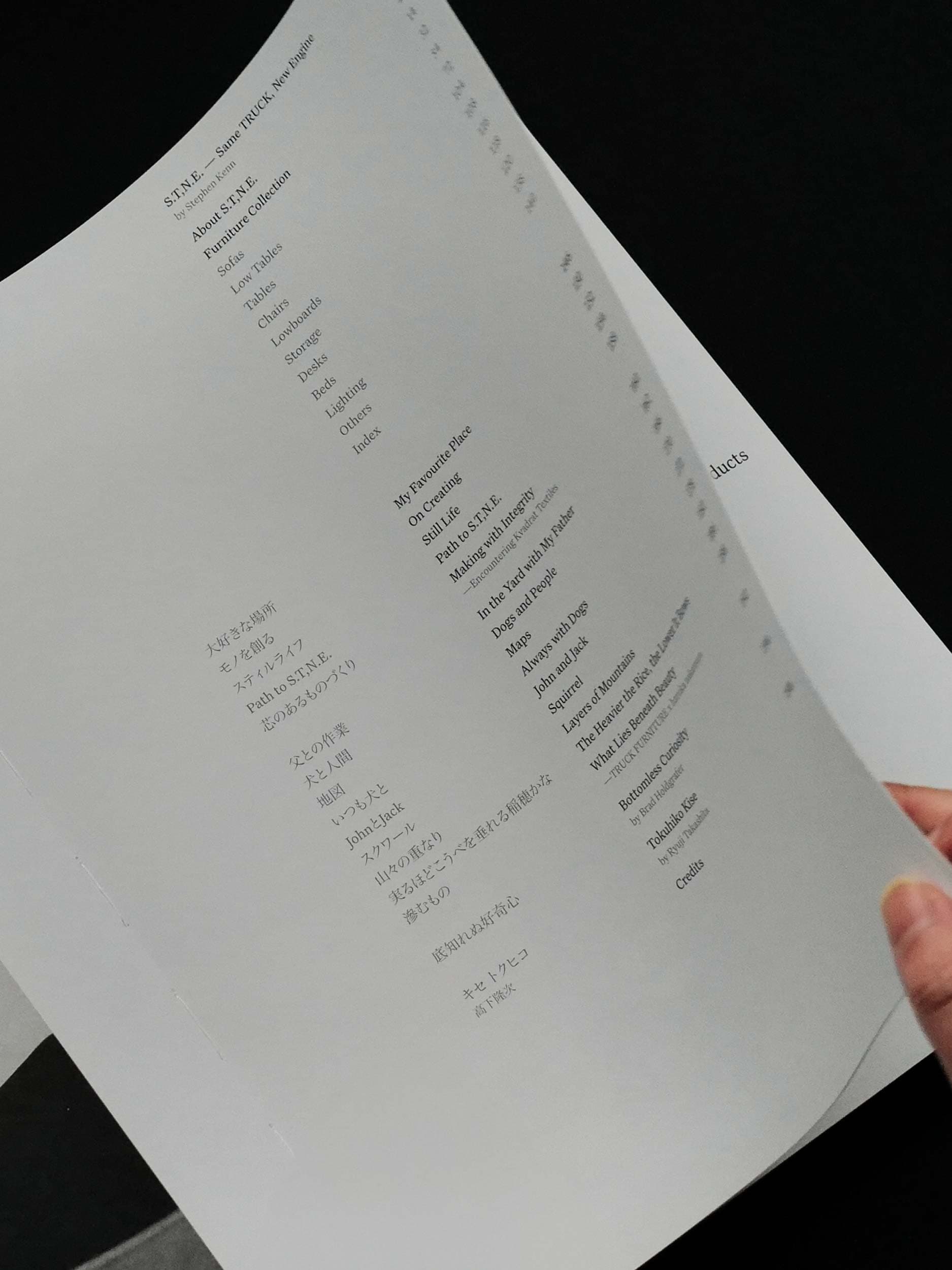 Tok reached out to us to help redesign the S.T,N.E. website and create print material for an exhibition in Tokyo at the beginning of November. One of the main print components we were commissioned to work on was a printed booklet, which later grew into a 200 page book featuring 47 Furniture pieces and 16 essays.